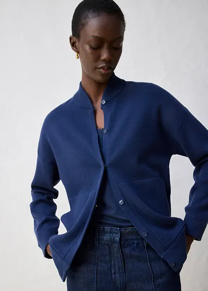 Morbido cardigan oversize con lana merino Blu scuro