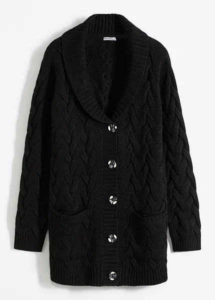 Cardigan lungo e morbido, con bottoni, collo a scialle e tasche applicate
