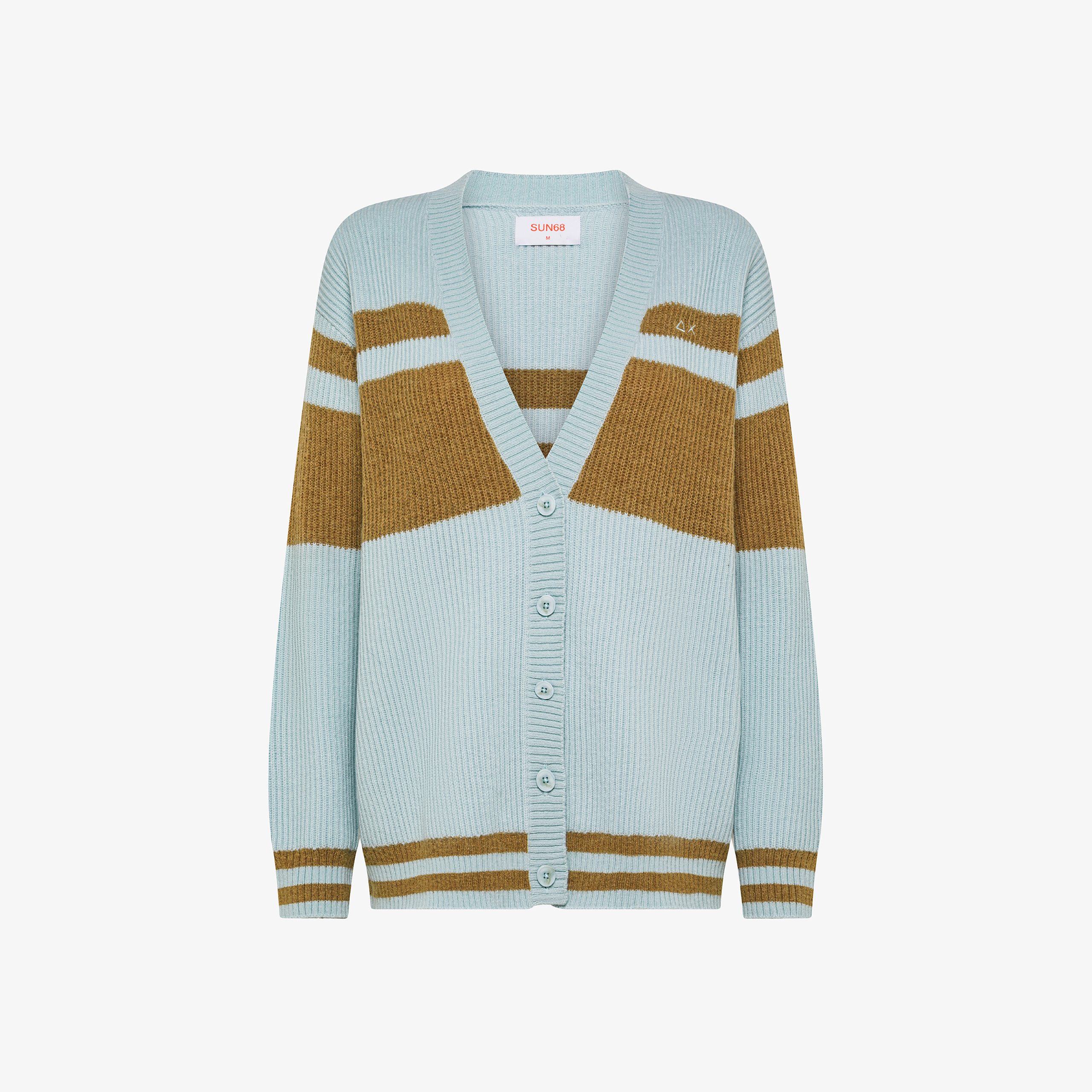 Cardigan in lana e alpaca a coste acqua/marrone deserto