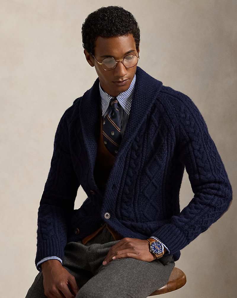Cardigan in lana e alpaca con camoscio