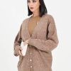 Cardigan Beige Donna maniche lunghe Maglia traforata crochet lavorato coprispalle leggero morbido sabbia white bone JJXX