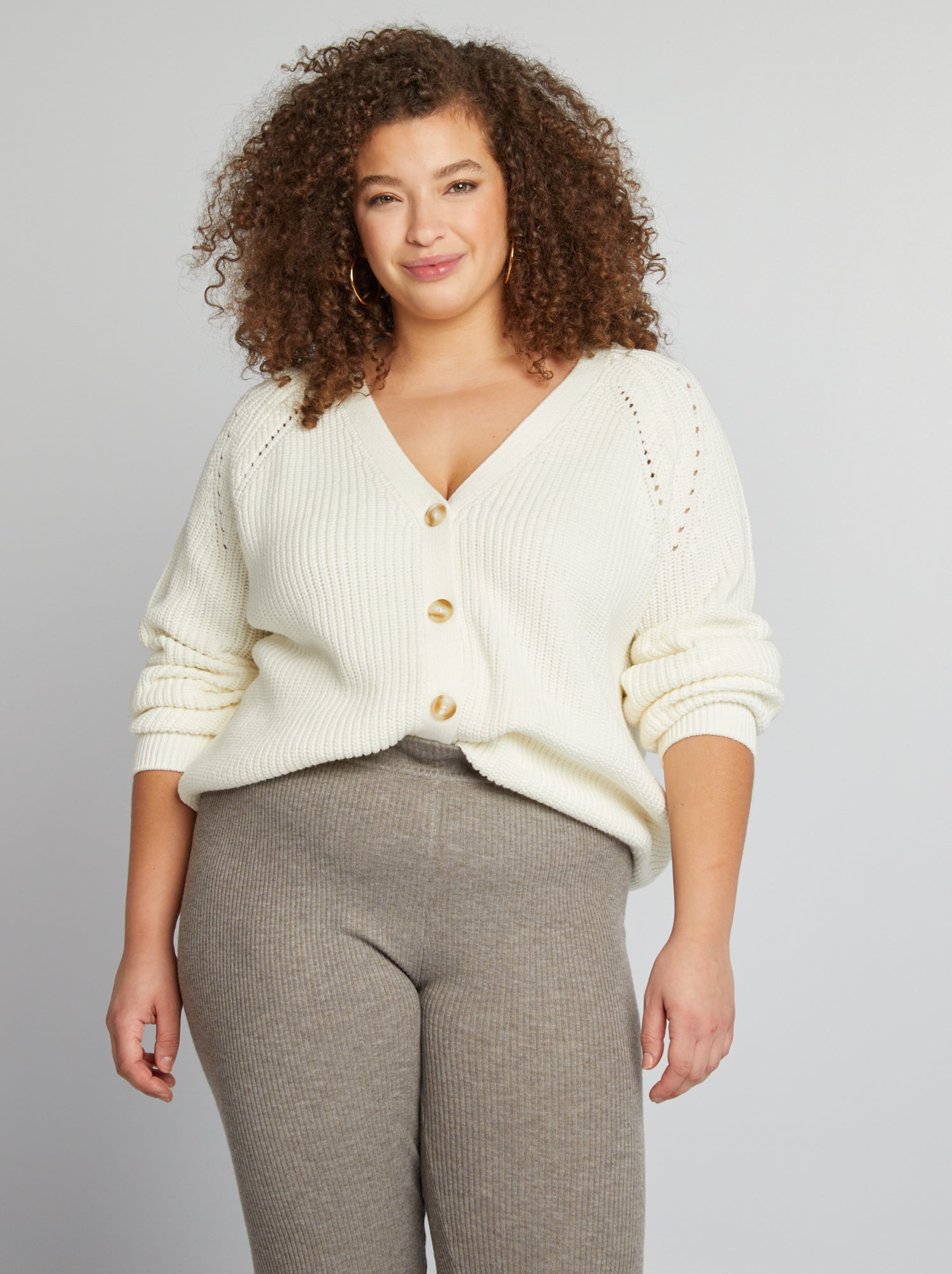 Cardigan scollo a V a maglia grossa BIANCO Taglie forti Donna 22.00€ Kiabi