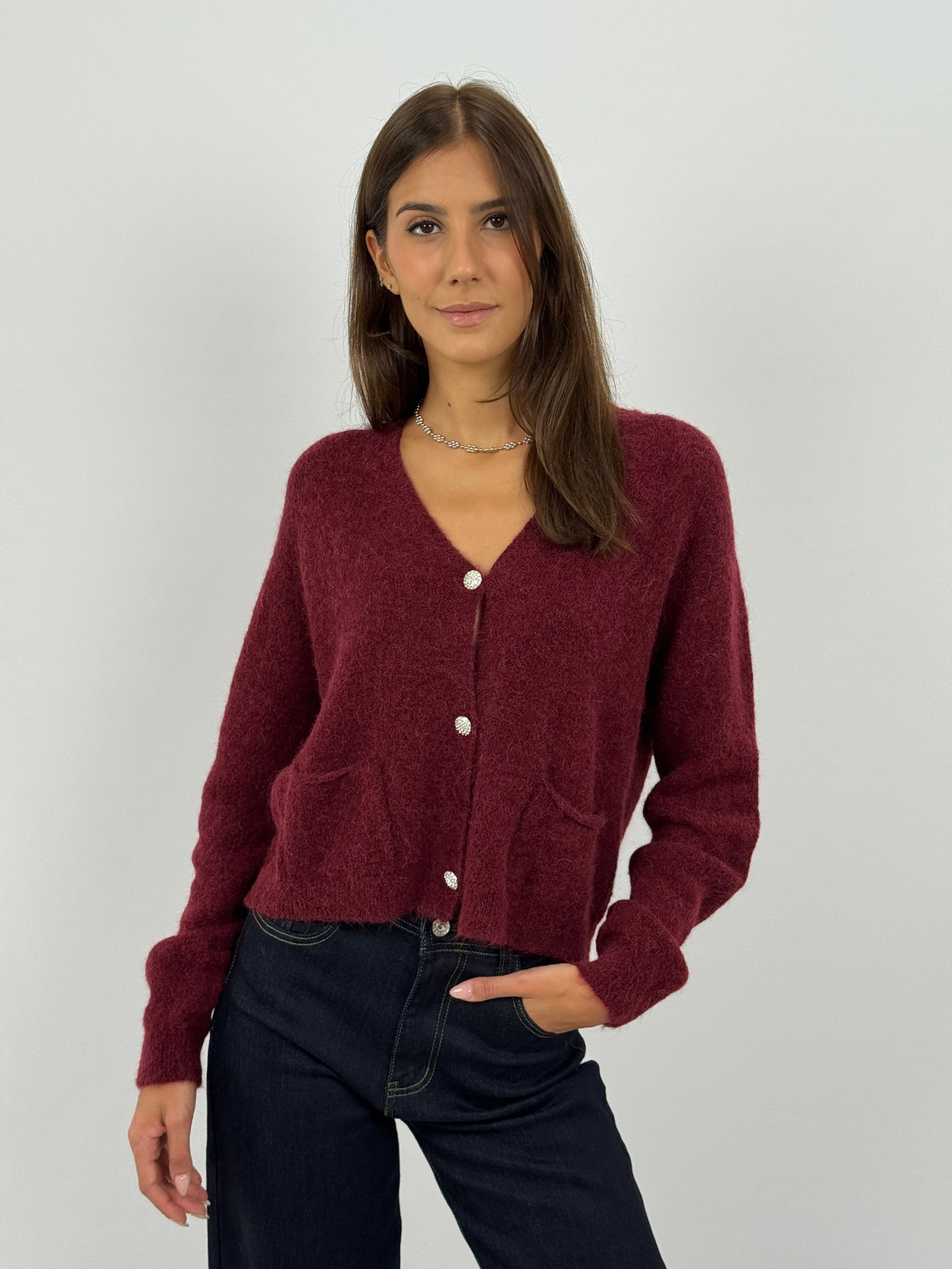Cardigan Lumina con Bottoni Gioiello Bordeaux