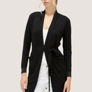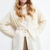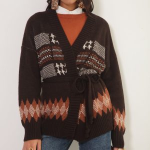 Cardigan in rex con stampa tribale e cintura in vita beige 75 cm