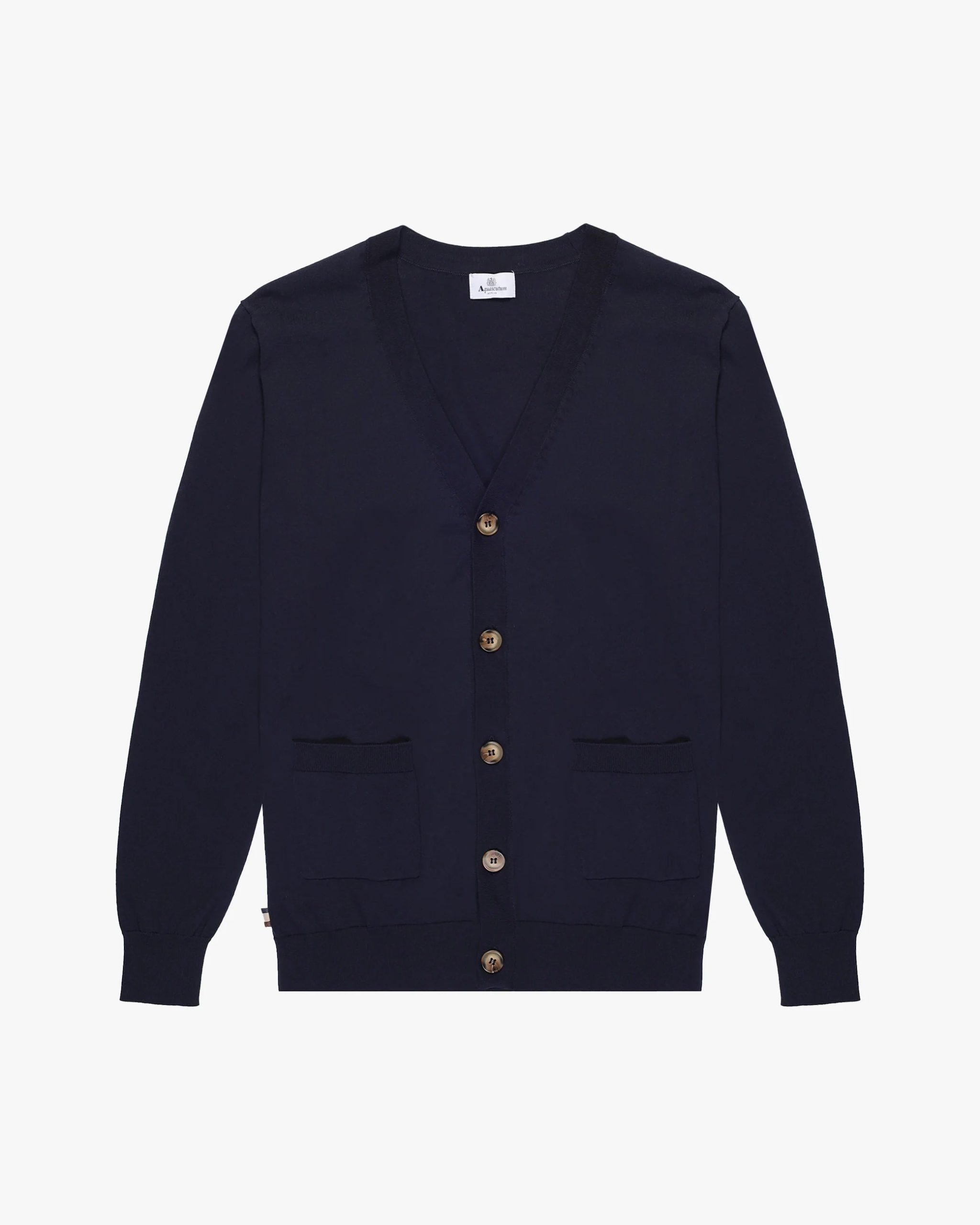 Aquascutum Cardigan in Cotone Uomo Patches Blu Navy