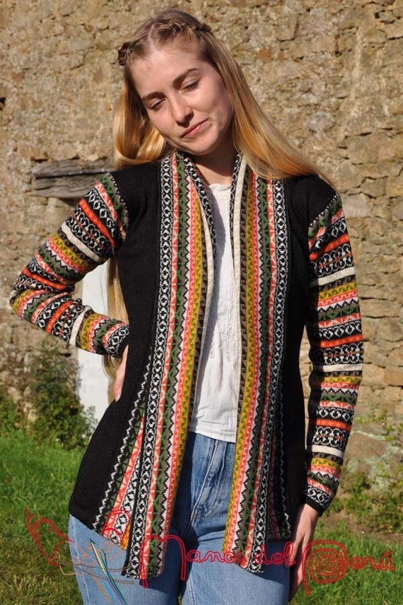Cardigan in lana di alpaca, giacca da donna elegante, cardigan chic, giacca moderna, giacca alla moda, cardigan jacquard peruviano, giacca lavorata a mano Etsy Italia