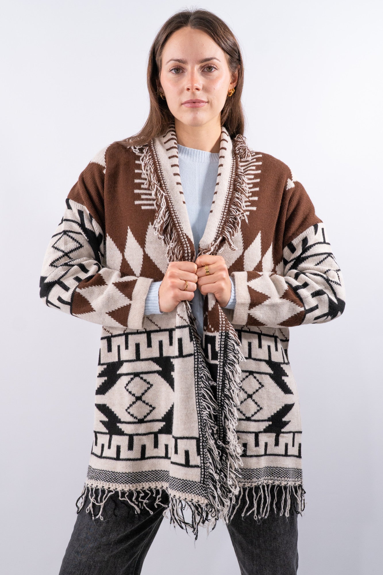 Cardigan aperto lungo con frange a contorno | ErreBi