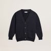 Cardigan da donna di colore beige con scritta ‘Golden’ sul retro