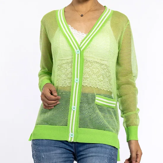 Cardigan leggero estivo a maniche lunghe verde da donna