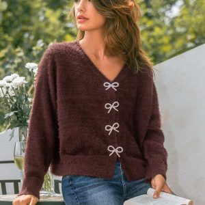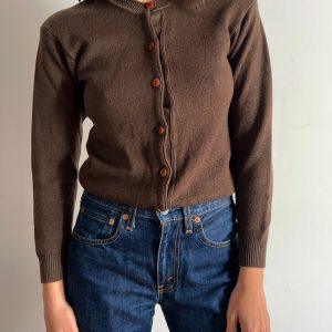 Cardigan marrone cognac lavorato a mano per donna, cardigan in cotone di soia morbido e traspirante, giacca cardigan con tasche, abbigliamento ecologico Etsy Italia