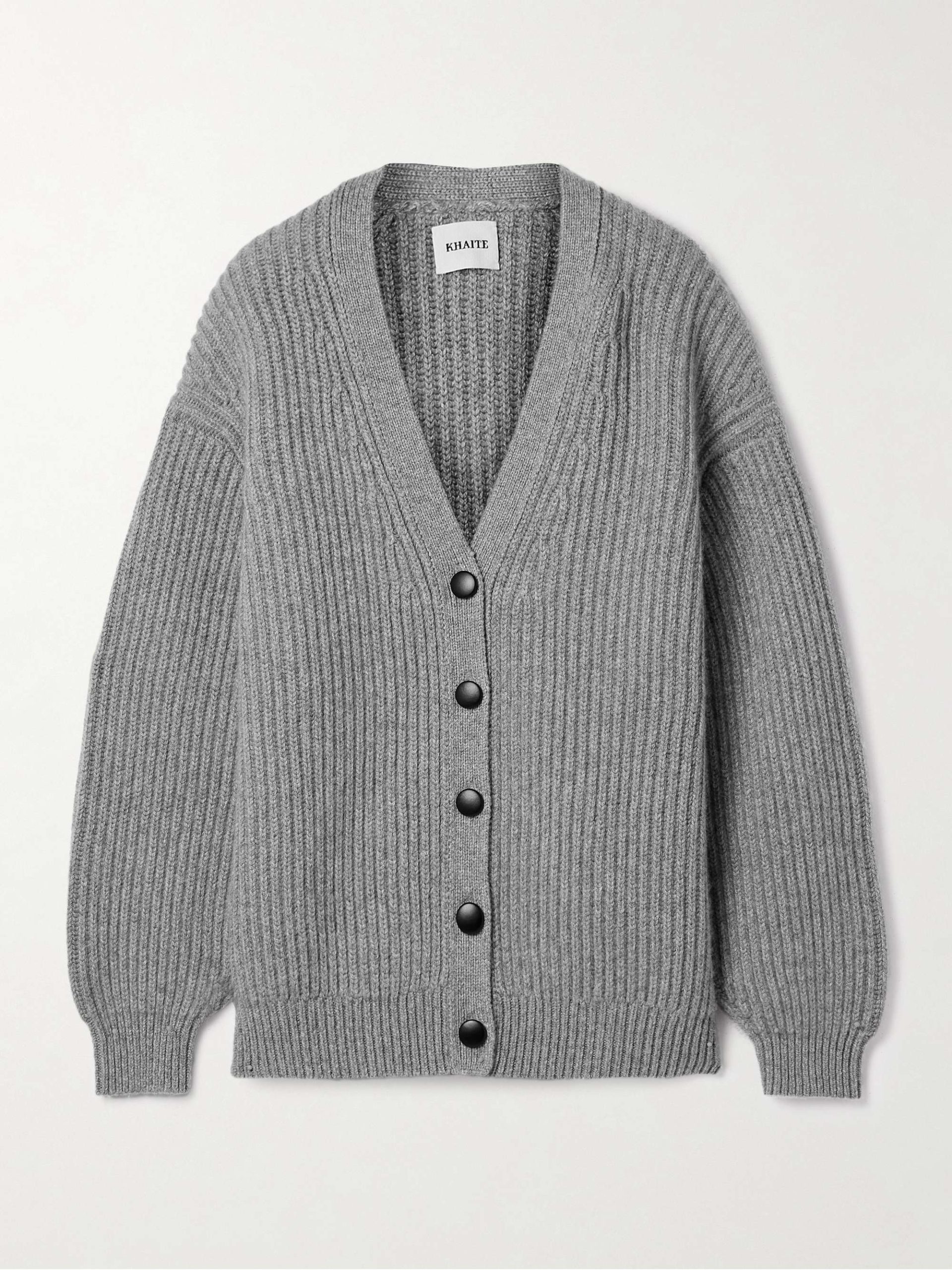 Cardigan oversize in cashmere a coste Wren grigio x small