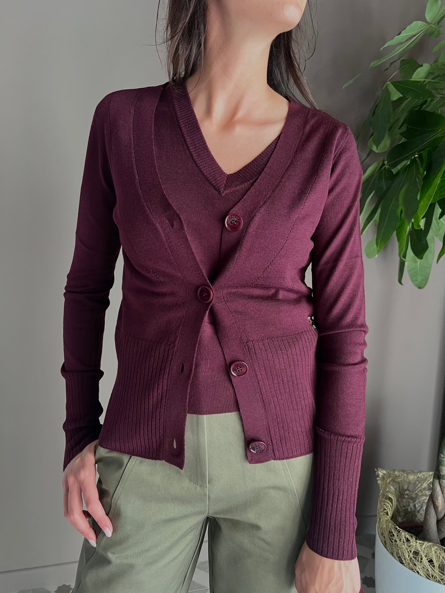 Cardigan in pura lana Patrizia Pepe Purple Red – IPPOPOTAMO