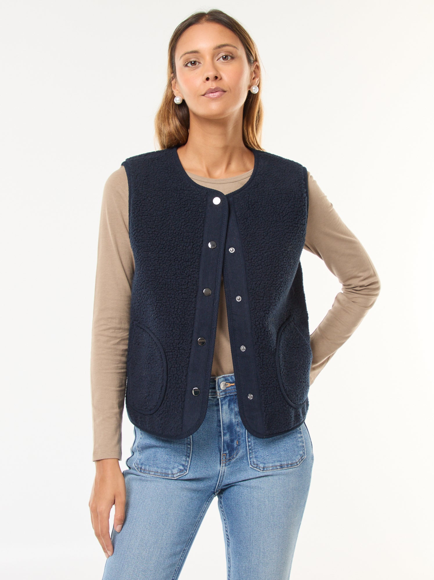 Gilet smanicato effetto montone Blu