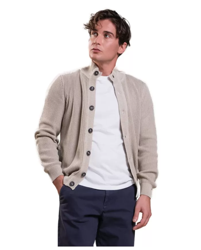Cardigan uomo sabbia in cotone a collo alto FRANK COT |IMPURE