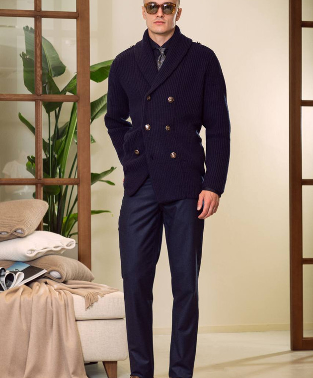 Brunello Cucinelli Cardigan doppiopetto blu realizzato in lana, cashmere e seta M36503206 acquista online su Symbol