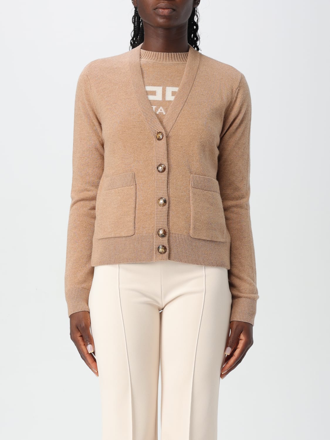 Elisabetta Franchi Outlet: Cardigan a v Cammello | Cardigan Elisabetta Franchi MK66S online su