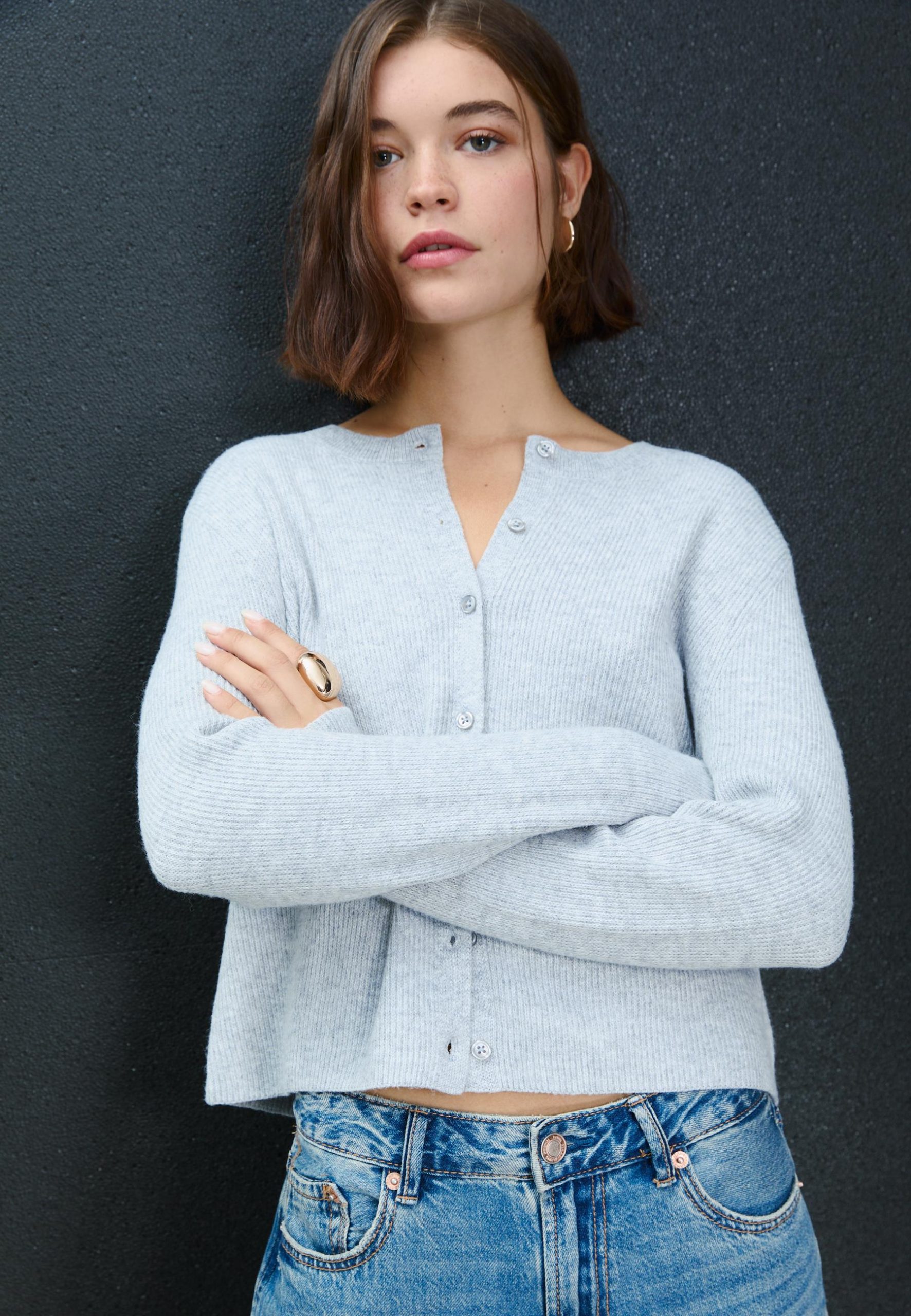 Cardigan in maglia a coste con bottoni Moda da donna | Stradivarius Italia